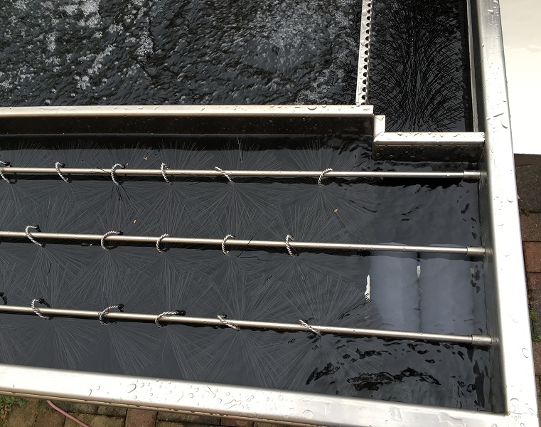 - mechanischer Vorfilter: Bürsten (leichte Reinigung und Unterstützung der biologischen Stufe)