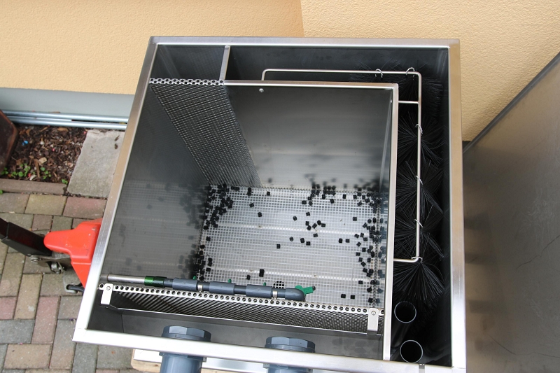 - mechanischer Vorfilter: Bürsten (leichte Reinigung und Unterstützung der biologischen Stufe)