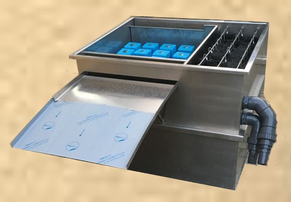 - breiter geräucharmer Wasserfall, steuerbar durch 10.000 Liter pro Stunde regelbare Pumpe