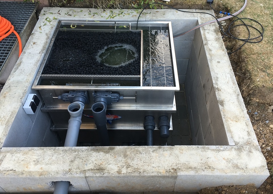- kein Rücklauf in den Teich bei Stromausfall oder Haverie (dadurch biologische Stabilität von bis zu 2 Tagen)