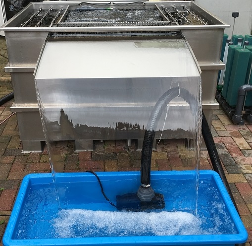 - schöner breiter geräucjarmer Wasserfall (900mm) (wir empfehlen den Einsatz von regelbaren Pumpen, somit kann der Wasserschleier optimal nach Kundenwunsch angepasst werden)