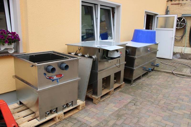 - kein Rücklauf in den Teich bei Stromausfall oder Haverie (dadurch biologische Stabilität von bis zu 2 Tagen)